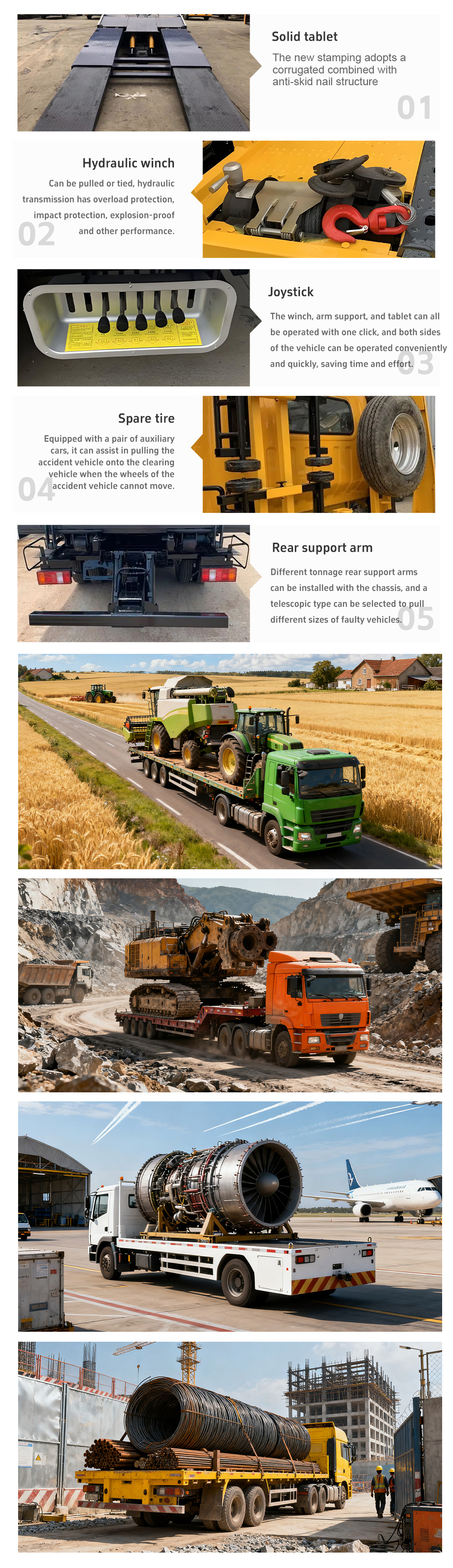 Una Grúa Montada En Camión Generalmente Consiste En Un Chasis De Camión De Carga, Compartimento De Carga, Despegue De Potencia, Grúa Y Patas De Soporte. El Chasis Del Vehículo Especial Para Grúa Se Puede Seleccionar De Dongfeng, Jiefang, Dayun, Shaanxi Automobile, Camión Pesado, Etc. Las Grúas Comúnmente Utilizadas Se Pueden Dividir En Grúas XCMG, Grúas Sany, Grúas De Carbón De Piedra, Grúas Hongchang Tianma, Etc. Según Los Fabricantes. Se Pueden Clasificar En Grúas De Brazo Recto Y Plegable Según Los Tipos De Grúas, Y En 2 Toneladas, 3,2 Toneladas, 5 Toneladas, 6,3 Toneladas, 8 Toneladas, 10 Toneladas, 12 Toneladas, 16 Toneladas Y 20 Toneladas Según El Tonelaje.